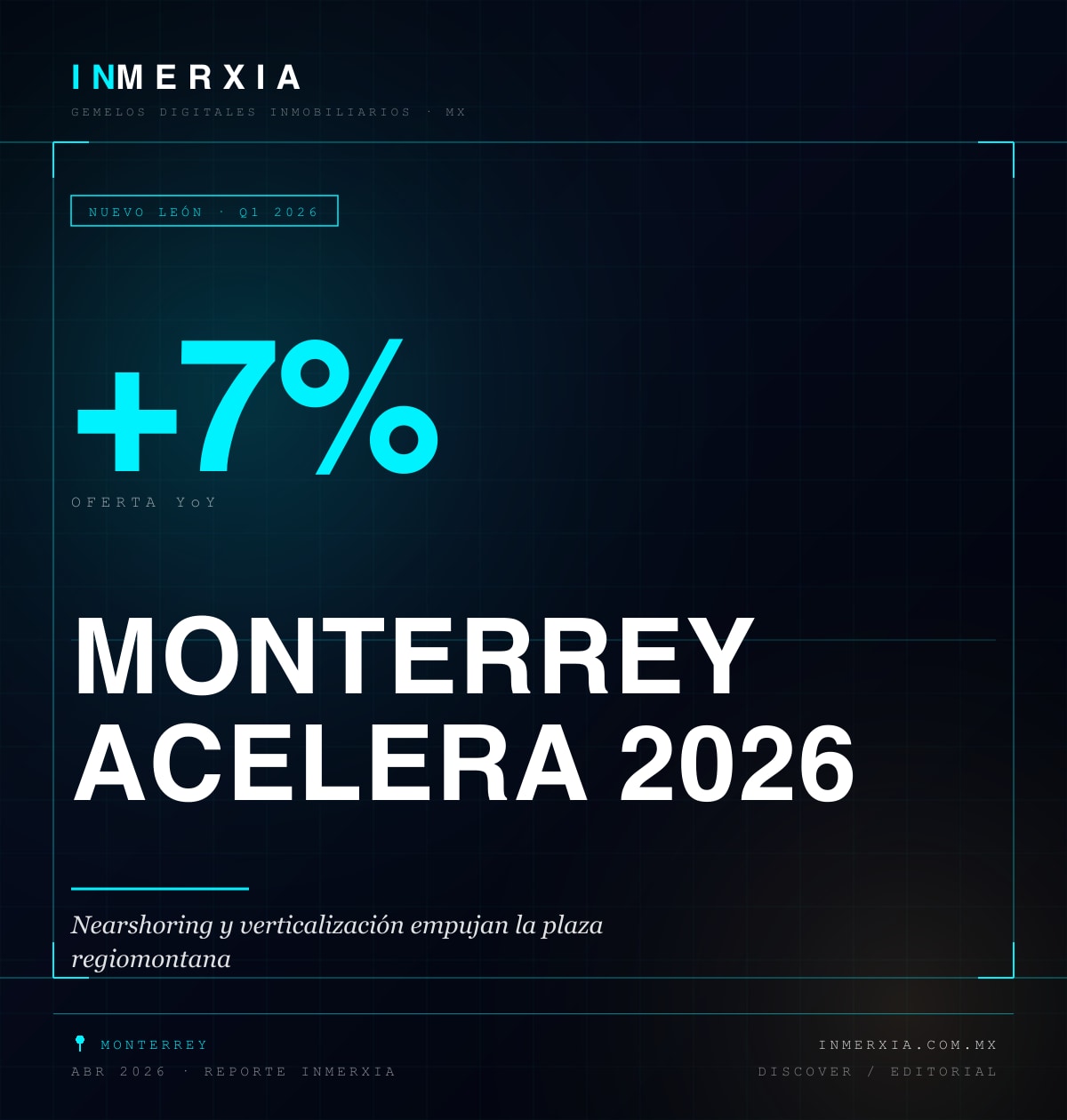El primer bimestre de 2026 cerró con una señal clara: el mercado inmobiliario de Nuevo León registró un incremento de oferta de hasta 7% interanual. Mientras el promedio nacional mostró inicios contenidos, la plaza regiomontana activó producto a velocidad superior, tanto en vivienda como en segmentos industrial y mixto.